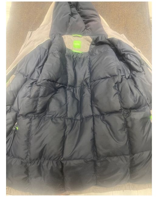 Elevate your winter wardrobe with this stylish Hugo Boss jacket. Crafted from softshell fabric, this windbreaker features a full zip design and is insulated with down to keep you warm during cold weather. The blue jacket is perfect for men who wear size XL and is lined with cotton for added comfort. The jacket is perfect for any occasion, whether you're dressing up for a formal event or keeping it casual. The jacket's features include a softshell fabric type, full zip design, and a stylish windbreaker style. Add this Hugo Boss jacket to your collection and stay warm in style this winter.