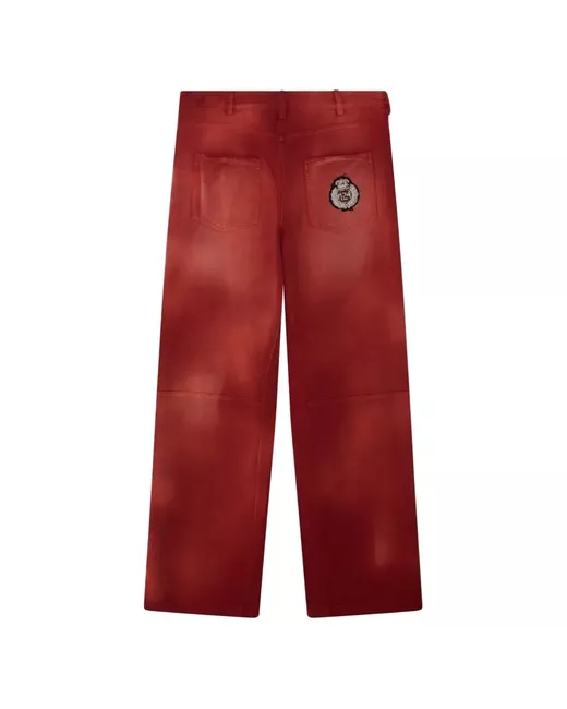 red patchwork design back patch belt loops five pockets
