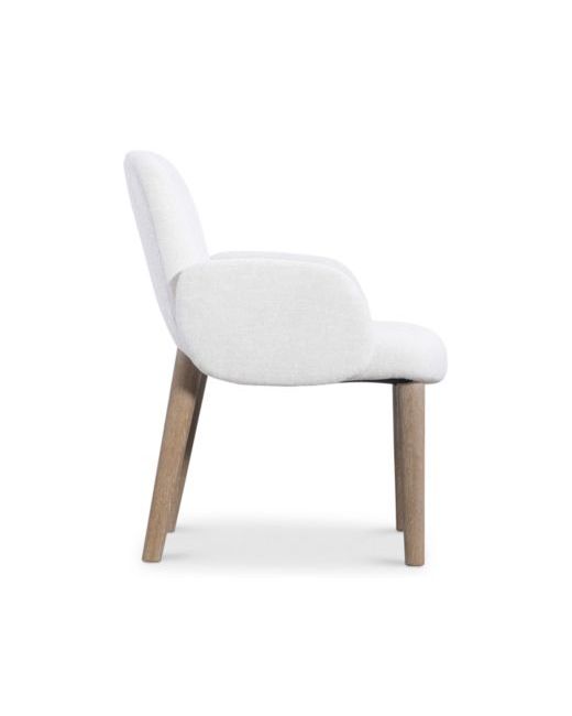 Simple lines craft unique shapes for the Loggia arm chair. Each form for the back, sides and seat fit together perfectly, uniting for a comfortable modern design. Exposed wood legs are in the Aria finish.