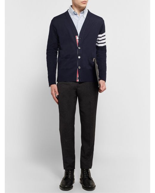 Stateside label Thom Browne is lauded for preppy staples, like this cardigan. Knitted in Italy from fine wool, it has the label's signature striped sleeve and a semi-fitted cut for a smart look. Leave the top and bottom buttons undone to show off the tricolour trim.