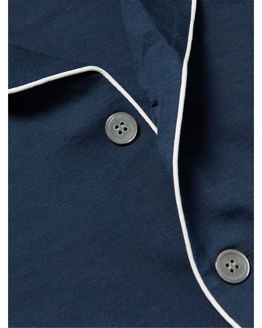 Derek Rose's pyjama set is made from stretch Micro Modal jersey, it boasts a myriad properties, from wrinkle-resistance to temperature regulation whether you're running hot or cold. Outlined with piping, the cut is a classic.