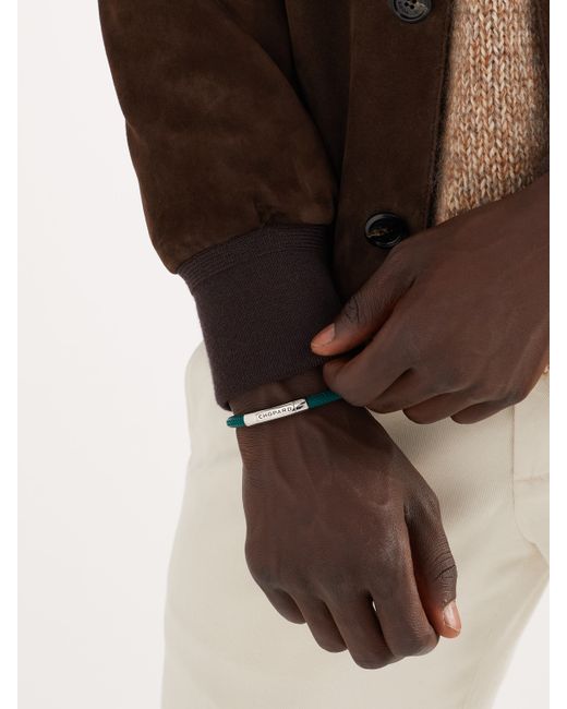 Chopard's bracelet playfully references the design language of vintage racing. It's made from rubber that resembles the treads of a '60s tyre and secures with a polished silver-tone clasp. The brand's moniker is engraved in bold black lettering.
