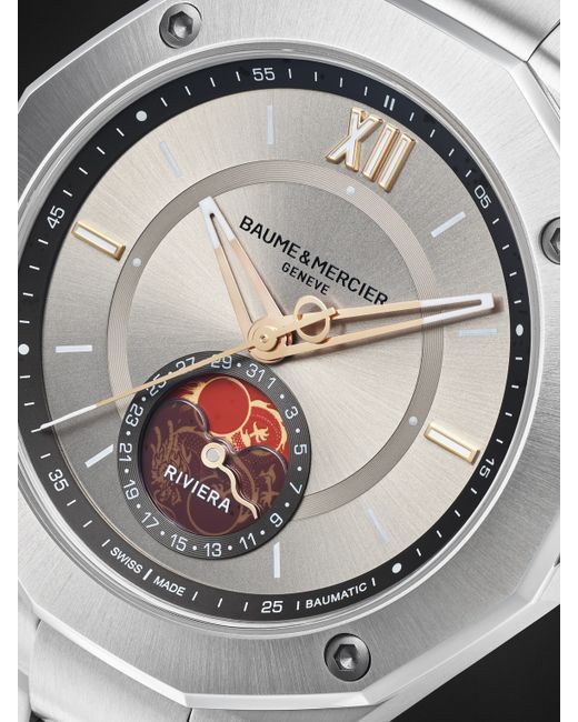 A tribute to Lunar New Year 2024, Baume & Mercier's 'Riviera' watch is aptly detailed with a moon-phase window decorated with traditional Chinese art and a gilded dragon at the sapphire glass crystal caseback. It's crafted from stainless steel and runs on a Swiss-made calibre Baumatic automatic movement with an impressive 120-hour power reserve. For warranty information, please refer to details & care
