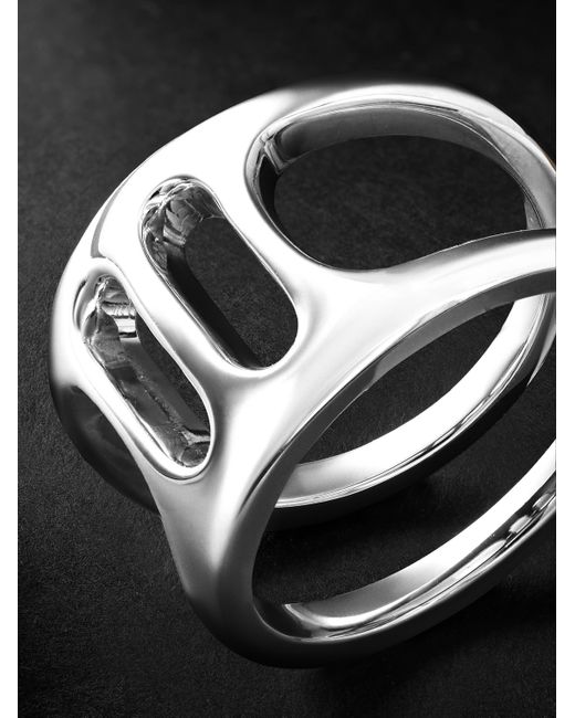 HOORSENBUHS' ‘Phantom’ collection is inspired by its signature tri-link motif, considered by the brand to be an enduring symbol of strength and quality. Crafted in-house at the label's LA workshop, this 'III' ring is made from polished sterling silver and named after its trio of center bars.