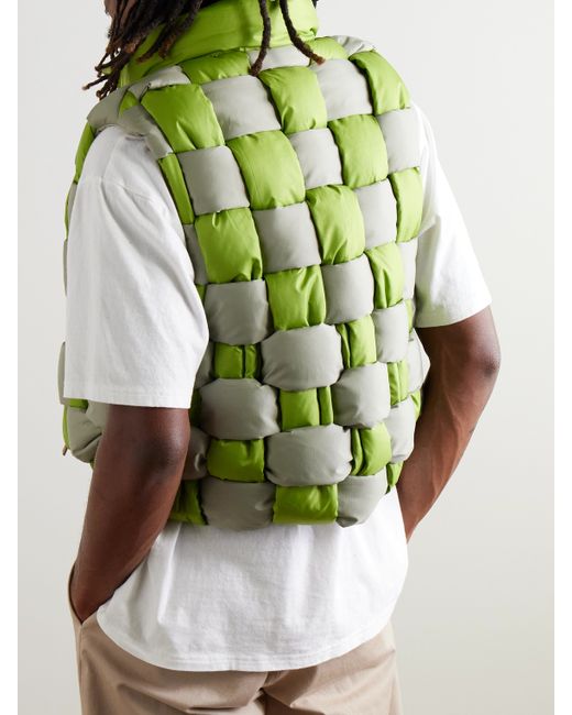 An arty take on quilting that's no less thermal, KAPITAL's gilet is woven with a tonal lattice of padded shell in mood-boosting shades of green. It's a signature style of the Japanese label, and reverses to a plain alternative.