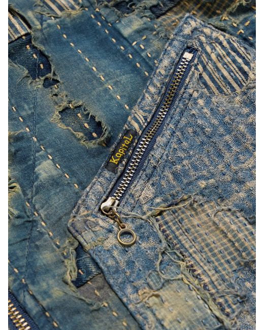 KAPITAL gets its name from Kojima, Okayama – Japan's 'Denim Capital'. Demonstrating that speciality, this jacket is distressed and repaired using sashiko stitching, a traditional technique used to extend a fabric's life. The front is fitted with a few slanted pockets, while the back depicts an impressively patchworked Virgin Mary.