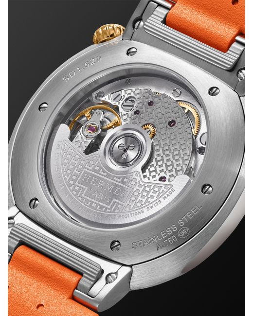 Hermes' 'Cut' watch makes a great daily driver – the 36mm dial is clearly laid out with Super-LumiNova® numerals, embossed indices, black markers and baton-shaped hour, minute and second hands. It has a satin-brushed stainless steel case and robust rubber strap, while the crown features the signature orange 'H'. Inside, there's a calibre H1912 automatic movement engineered by Swiss workshop Manufacture Vaucher. For warranty information, please refer to details & care