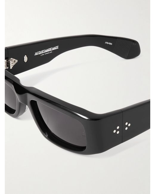 We could see Jacques Marie Mage's 'Romi' sunglasses on Bob Dylan or Miles Davis, they have thick, rectangular frames reminiscent of countercultural designs. They're crafted from black acetate and limited to a run of 350.