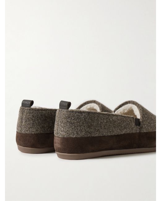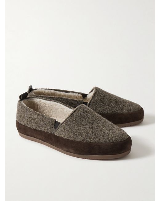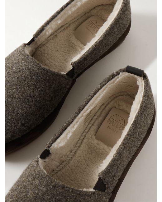 Mulo's signature loafers combine the fit and feel of sneakers with the ease of classic espadrilles. This suede-trimmed pair is handmade from wool and lined with cosy shearling. The cushioned footbeds promise all-day comfort, whatever your plans.