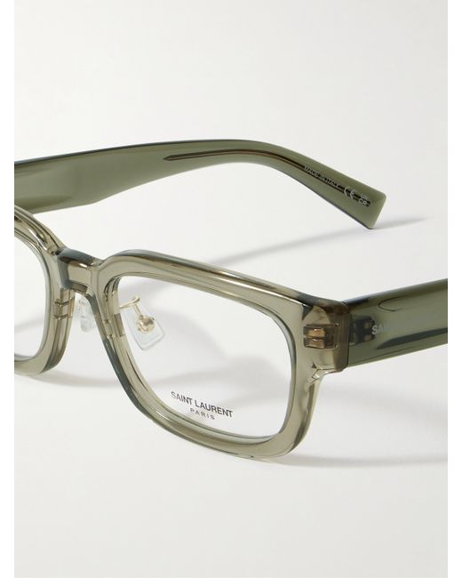 Sleek glasses have a cool way of pulling an outfit together. SAINT LAURENT Eyewear's pair is made from transparent acetate, which highlights the internal metal fittings. They have rectangular frames with branding along the arms.