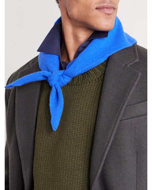 BODE's sweater is modelled on a style from the mid-century. It's knitted in a chunky, ribbed stitch from green cashmere and has a boxy shape, with narrowed cuffs and raglan sleeves.