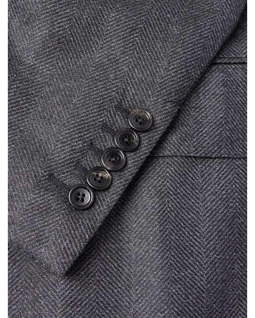 TOM FORD is renowned for its faultless tailoring. This 'Shelton' blazer is made from grey wool-herringbone and has a sharp, single-breasted profile with padded shoulders and wide peak lapels. It has a single vent and is partially lined.