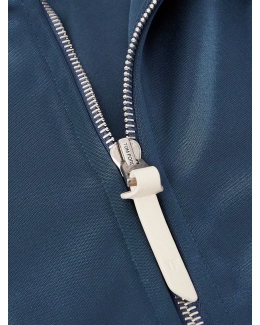 Retro track styles inform TOM FORD's jacket. It's made from sporty tech-jersey that's accented by contrasting stripes and has a stand collar and ribbed trims. Small to size. See Size & Fit notes.