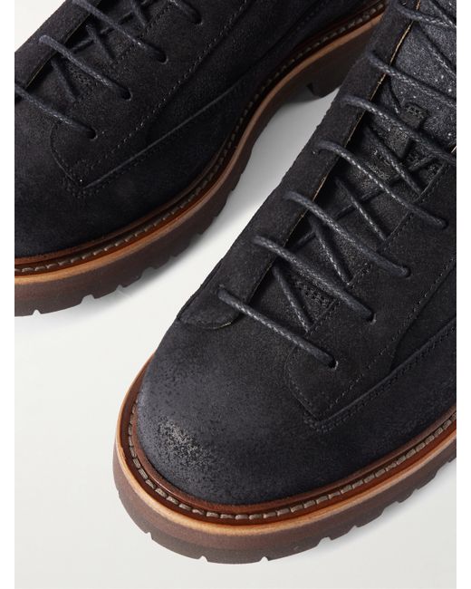 EXCLUSIVE AT MR PORTER. Designed for the trek, Brunello Cucinelli's hiking boots are crafted from suede that's waxed for durability and water resistance. Vibram rubber-lug soles provide optimal grip.