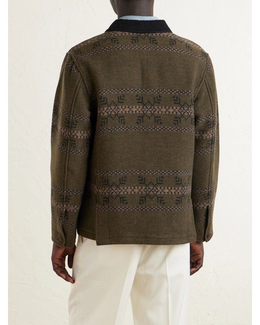 RRL's jacket draws on the label's Americana heritage. Cut from a virgin wool-blend, it features patterned stripes, a contrast collar and utilitarian flap pockets. Wear yours with denim and sturdy boots.