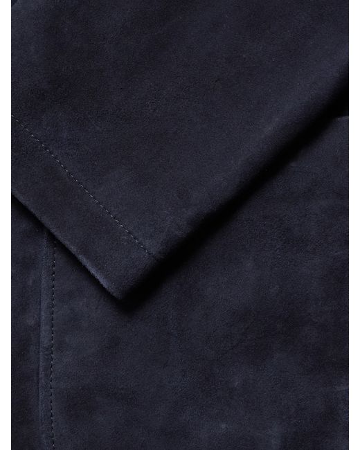 DESIGNED BY MR PORTER. Mr P.'s blazer is cut from suede in a deep navy shade. It's fully lined for structure and minimally detailed for a clean finish. Style yours with a fine or mid-weight rollneck underneath.