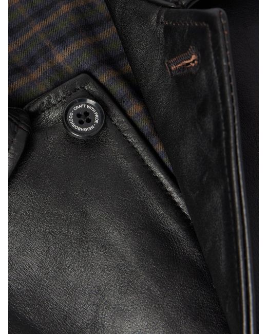 Neighborhood's jacket is made from leather that'll only get better with age. It's cut for a relaxed fit and fully lined in checked flannel. Small to size. See Size & Fit notes.