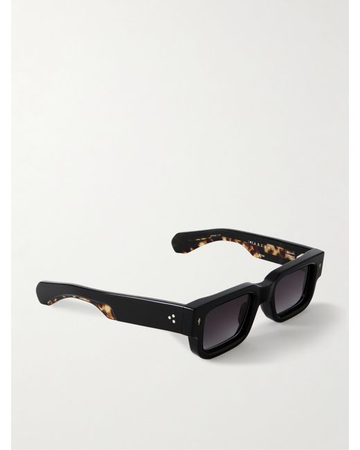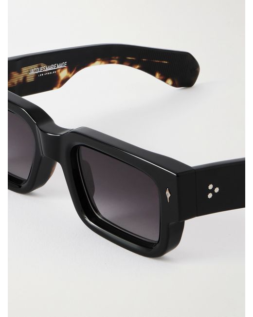 Jacques Marie Mage's 'Ascari' sunglasses have bold rectangular frames inspired by '50s styles. Handmade in Japan from 10mm cured cellulose acetate, they feature double-laminated temples, signature arrowhead pins and durable tension-secured barrel hinges.