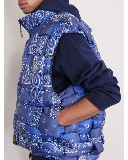 Blue Quilted Patchwork Bandana-Print Shell Gilet Men
