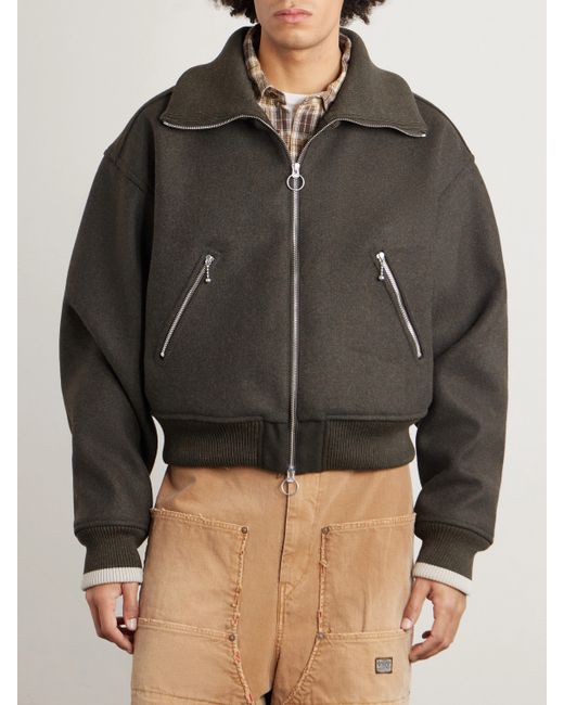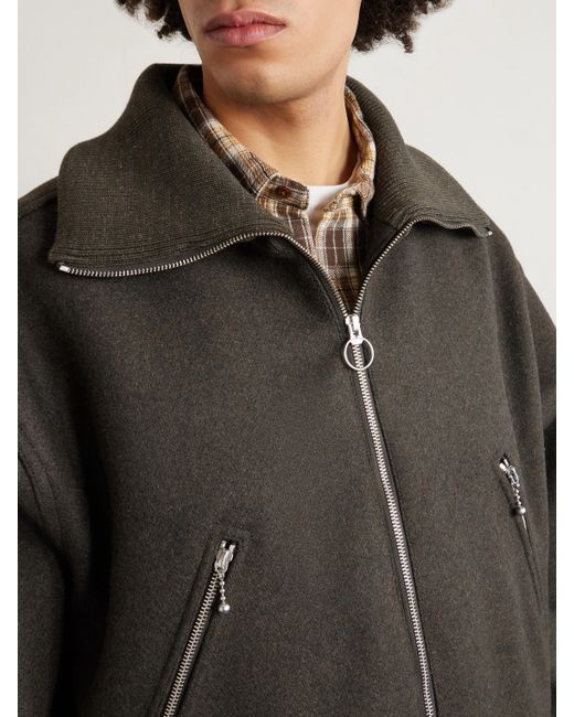 KAPITAL's jacket is made from warming wool-flannel. Accented by silver-tone zips, it has a fold-over collar and thick ribbed edges — which help create the blouson shape.
