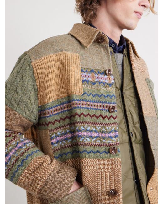 Polo Ralph Lauren's cardigan is collaged together from panels of wool and cashmere-blend in an assortment of patterns, ranging from herringbone to cable-knit. It has a structured point collar and a smooth cotton lining.