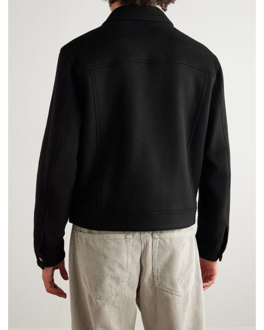 Unlike your typical trucker jacket, FRAME's version is woven from a wool-blend, so it's a little warmer than you'd expect. It's cut for a boxy fit, with a squared collar and a slightly cropped hem, and has polished, silver-tone buttons at the front and on the chest.