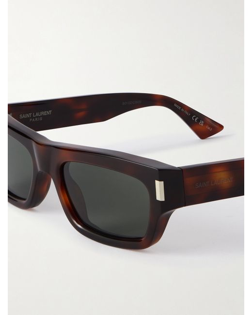 SAINT LAURENT's recent runway shows highlight the house's emphasis on accessories. From its Eyewear line, these rectangular-frame sunglasses are made from tortoiseshell acetate with silver-tone details at the temples and discreet logos along the arms.