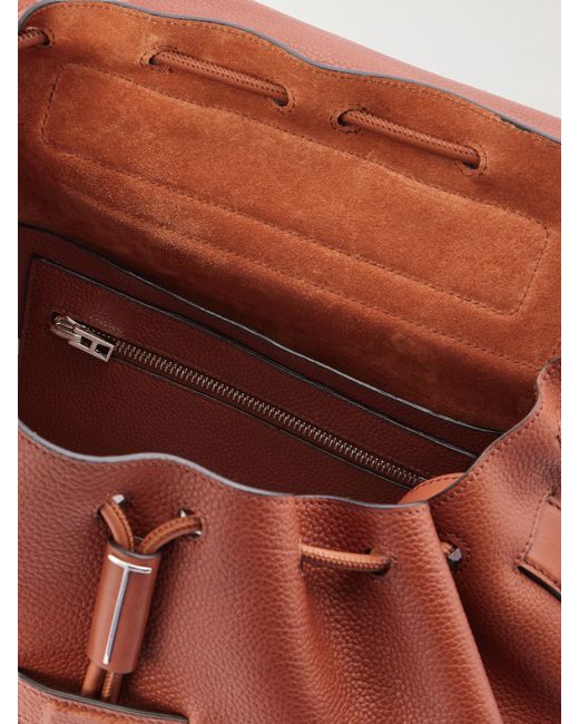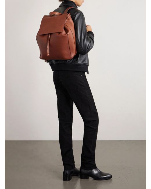 TOM FORD's backpack is crafted from grained leather which stands up nicely to frequent use. Set on adjustable straps, it has a drawstring opening that stays hidden under the top flap. The roomy interior has a zipped pocket for small essentials and enough space for a sweater, water bottle and paperback.