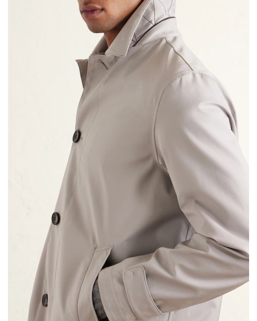 Herno is serious about weatherproofing – it considers "water" its raison d'être . This coat has been made in Italy from wool with a protective Storm System® treatment. Cut in an enveloping shape, it has a square hem that hits around the mid-thigh.