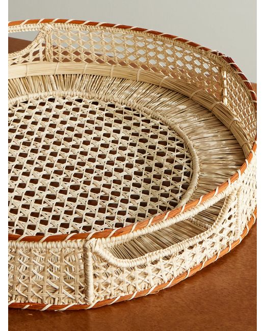 Whether as a centrepiece to display fruits or a serving platter for canapés, La DoubleJ's raffia tray can be styled and used in so many ways. It's intricately woven with a contrasting base and lip and has open handles on either side.