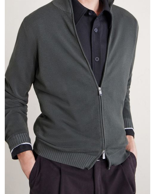 Founded in 1934, FEDELI is renowned for turning everyday knitwear into luxury staples. This zip-up sweater is made from breathable cotton, featuring a high ribbed collar, cuffs and hem. Wear yours with a tee and jeans for understated refinement.