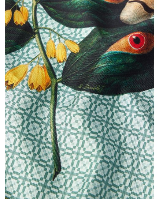La DoubleJ's pocket square is brimming with personality. Made from smooth silk-twill, it's printed with an array of vibrant geometric patterns and a surrealist branch, with parrot heads in the place of leaves.