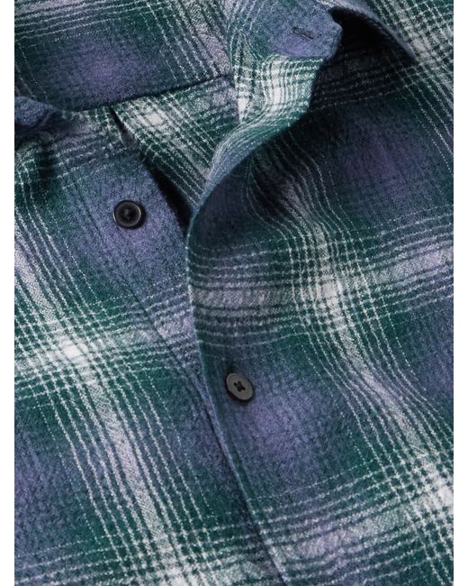 Auralee's shirt is named for its lighter, 'Airy' handle. Made from wool-flannel, it's patterned with checks and has a slightly crinkled finish.