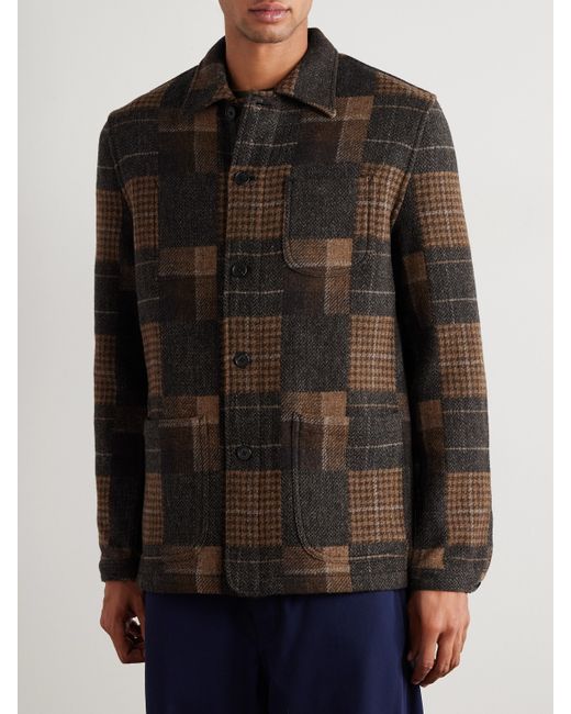 Sid Mashburn's overshirt is made to look patchwork, with a medley of checks, like plaid and houndstooth. It's woven from wool and shaped like a chore jacket, with a straight-cut torso and curved, pleated sleeves.