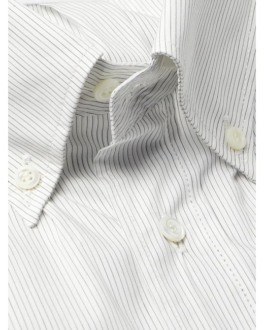 Brunello Cucinelli's shirt has been crafted in Italy from crisp cotton-poplin, woven with fine pinstripes and tailored for a slim fit with set-in sleeves and pleated double cuffs. Wear it with a suit jacket — spezzato or otherwise.
