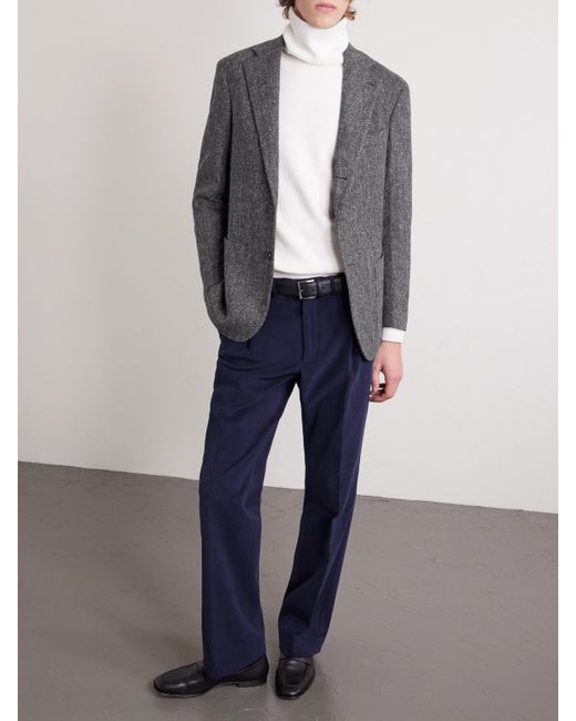 Designer Jake Mueser experiments with subtle patterns and textures in his tailoring. In a classic herringbone motif, this 'Waverly' blazer is cut from wool and woven with tonal-grey threads for depth and dimension.