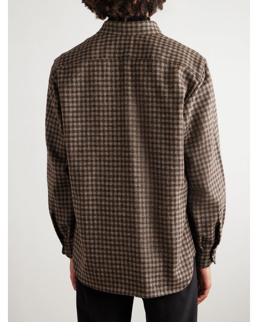 Rubinacci's shirt is thick and weighty, like a blanket or a throw. It's been made in Italy from pure wool woven in a check of brown, blue and beige. Wear it with worn-in cords or dark-wash jeans.