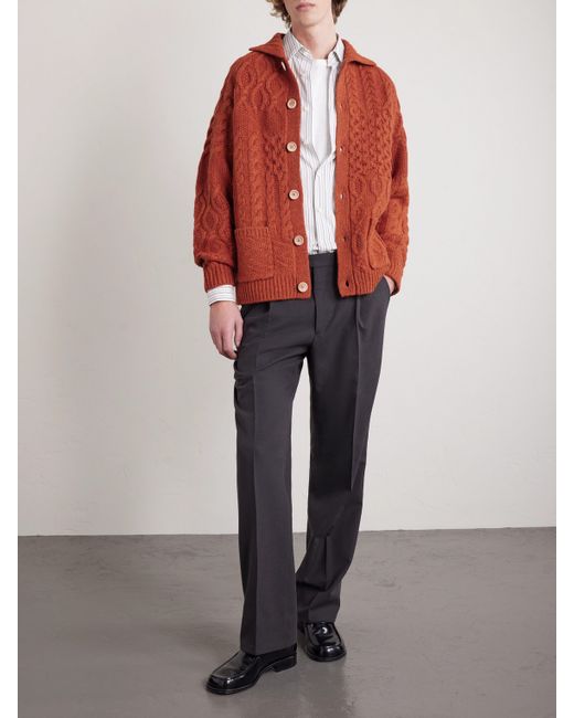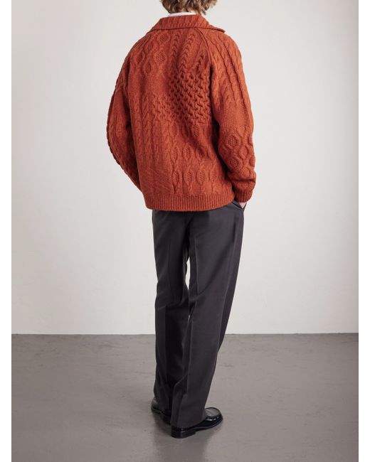 BEAMS PLUS considers its garments 'basic wear', but that doesn't mean they're lacking in style or detail. This 'Alan' cardigan is knitted from wool in a patchwork of different cable techniques, giving it a unique character. Its slouchy, collared profile will work just as well in the office as it will around the house.