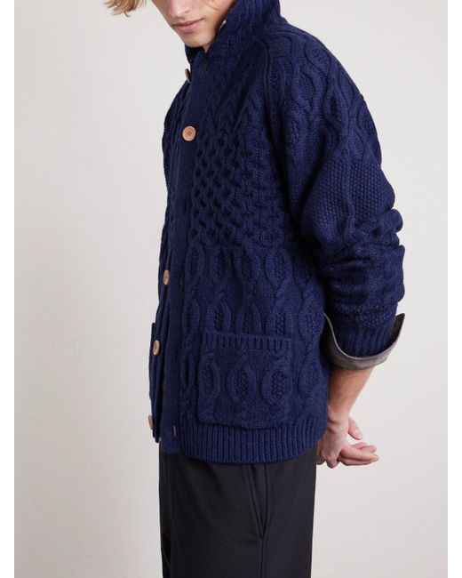 BEAMS PLUS considers its garments 'basic wear', but that doesn't mean they're lacking in style or detail. This 'Alan' cardigan is knitted from wool in a patchwork of different cable techniques, giving it a unique weight and weft. Its slouchy, collared profile will work just as well in the office as it will around the house.