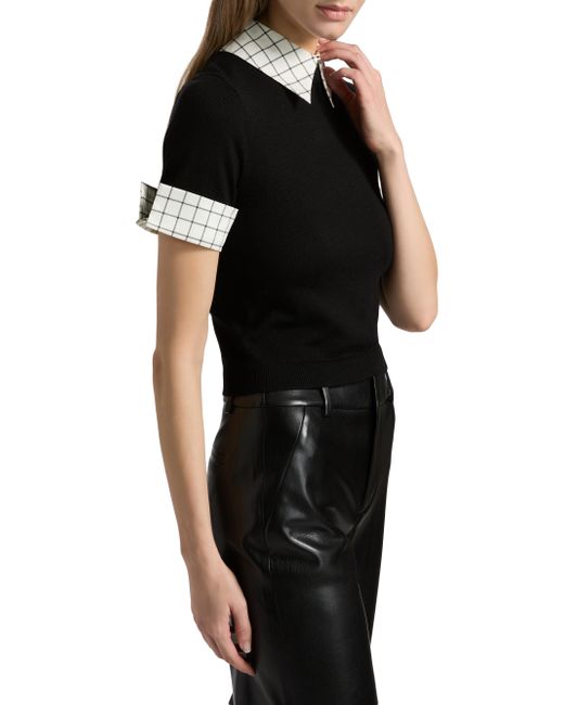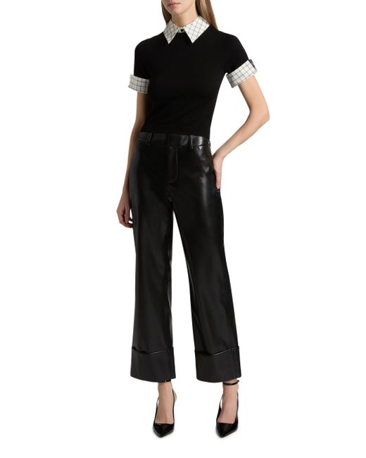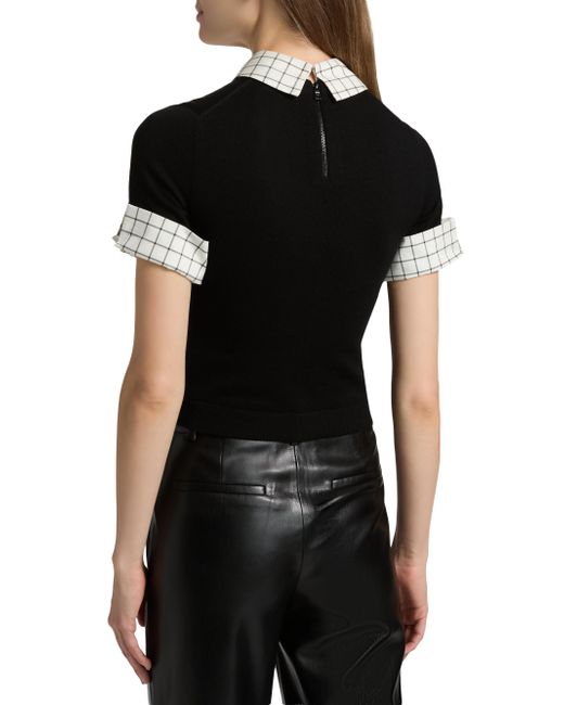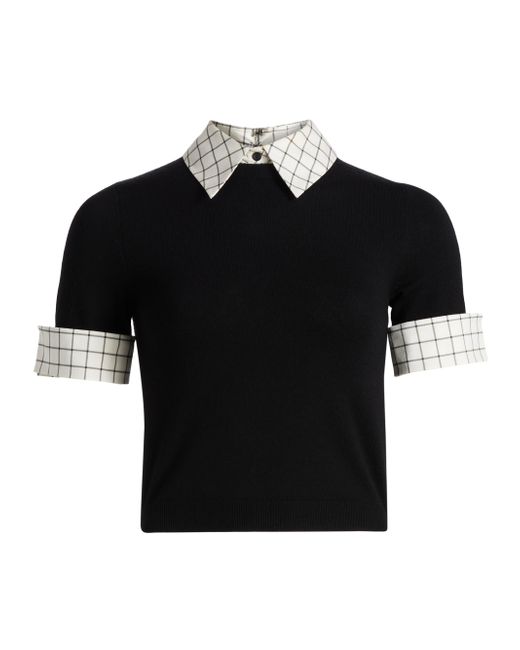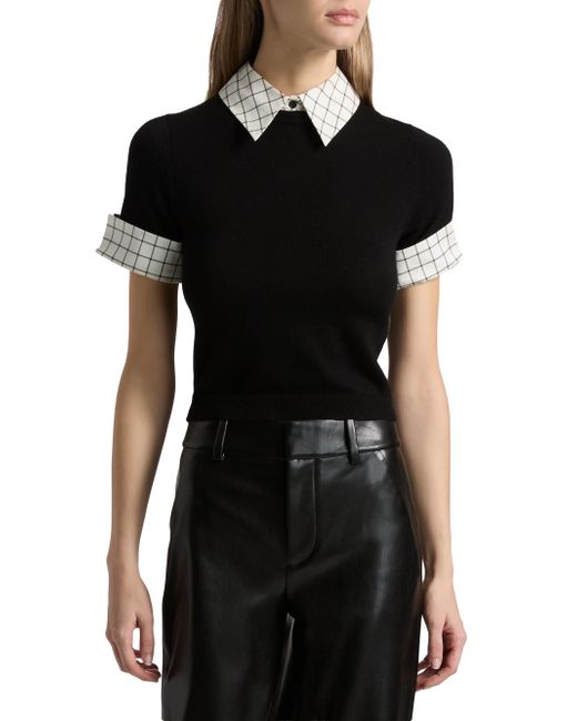 Alice + Olivia's Aster collared short-sleeve top is crafted from a stretch wool, complete with a versatile detachable collar and cuffs. Spread collar Short sleeves, detachable cuffs Back zip closure 98% wool/2% elastane Combo: 73% cotton/24% polyester/3% elastane Dry clean Imported SIZE & FIT Model measurements: 5'10" tall Model is wearing a US size 4 ABOUT THE BRAND Founder Stacey Bendet has been embracing bold color, eclectic prints and an overall passion for whimsy since launching Alice + Olivia in 2002. From party-ready dresses to statement tops and everything in between, she's created a playful and overtly feminine aesthetic that's uniquely her own. Contemporary Sportswear - Alice + Olivia > Alice + Olivia > Saks Fifth Avenue. Alice + Olivia. Color: Black Soft White. Size: XS.