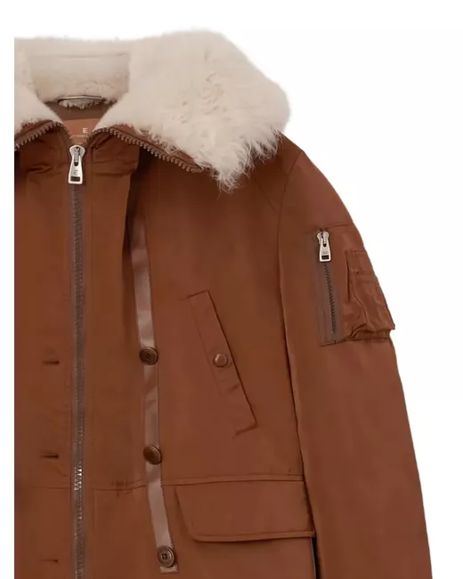 brown fur trim zip fastening flap pockets button fastening long sleeves