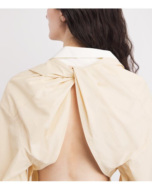 Bridging the gap between minimalist design and creative expression, Voranida champions sculptural precision and rich textural depth. This shirt exemplifies the brand's ethos; characterised by its traditional sartorial hallmarks and yet juxtaposed by a striking open back, it plays with proportion and pairs effortlessly with the brand's matching skirt for a cohesive springtime statement.
