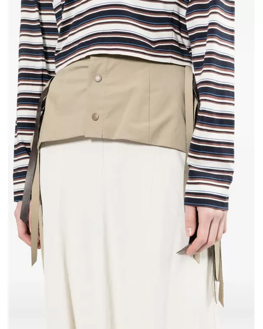 off-white striped front button placket long sleeves rear button fastening button cuffs two chest jetted pockets shoulder pads