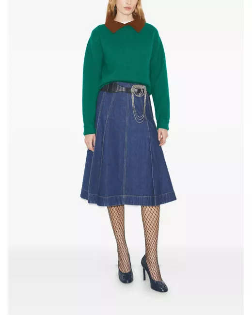 Edwina Embroidered Panel Merino Wool Collared Sweater S Small