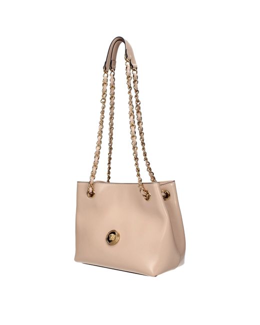 Description: The product with MPN 10213831A150331PF5V and code F85710 leather in pink is a shoulder bags designed by Versace. It has features like front detail, back logo.