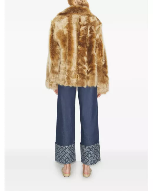 light brown fur trim lapel collar front pockets straight hem concealed fastening
