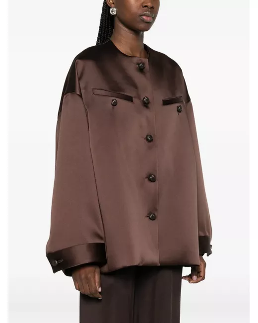 Women's Brown chest-pocket button jacket