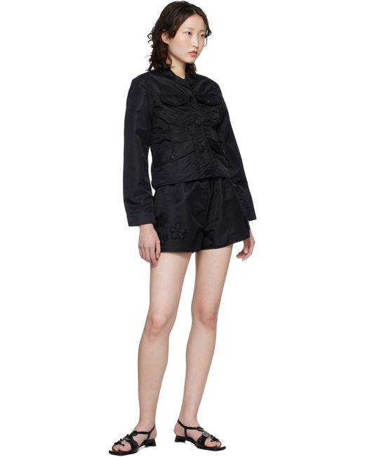 Recycled nylon twill blazer. · Certified Positive Luxury Butterfly Mark · Open spread collar · Press-stud closure · Flap pockets at chest · Welt pockets at waist · Press-stud barrel cuffs · Darts at back waist · Press-stud tabs at back hem · Unlined Supplier color: Black