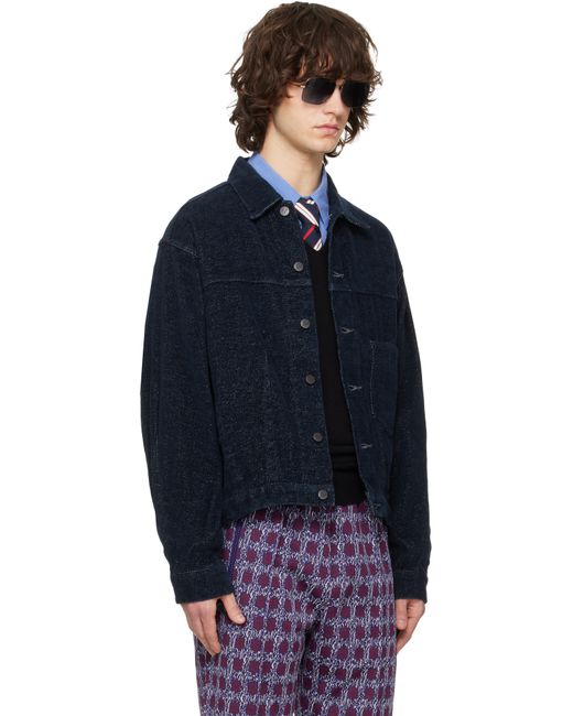 Cotton- and paper-blend chenille jacket. · Spread collar · Button closure · Patch pocket at chest · Darts at front and back · Buttoned barrel cuffs Supplier color: Navy