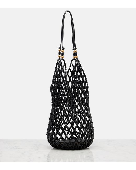 Material: wood. Lining: unlined. Made in Italy. Designer color name: Nero. Trim: leather. Detachable zipped pouch. Top handles. Contains non-textile parts of animal origin. Includes: dust bag.